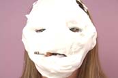 | Daisy is about to dive face first into the ultimate messy challenge. She begins with a fresh, bare face as she seductively inhales the delicious smoke of multiple cigarettes, at times even placing an entire handful of cigarettes into her mouth at once. She covers her entire face with shaving cream being sure keep her whole face covered except for tiny holes near her eyes and mouth. She applies red lipstick to her exposed lips and takes time to admire her handy work in a hand-held mirror. Finally she wipes the cream from her skin and applies a light dusting of flour to her face. 30 min. |