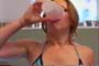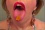 | Dahvia parts her ruby red lips and gives a gaze down her wide open throat. She traces the path to her begging belly, first in her mouth, down her esophagus and past her blue bikini to her naked stomach. She tenderly teases a gummy bear with her tantalizing tongue and effortlessly swallows the entire being. Just imagine if you were her next victim as she shows you the way. She sips on water to wet the ride down her throat and repeatedly takes down another gummy prey. Dahvia lies down on her back and jiggles her tummy so you can hear the wild ride inside. 30 min. |